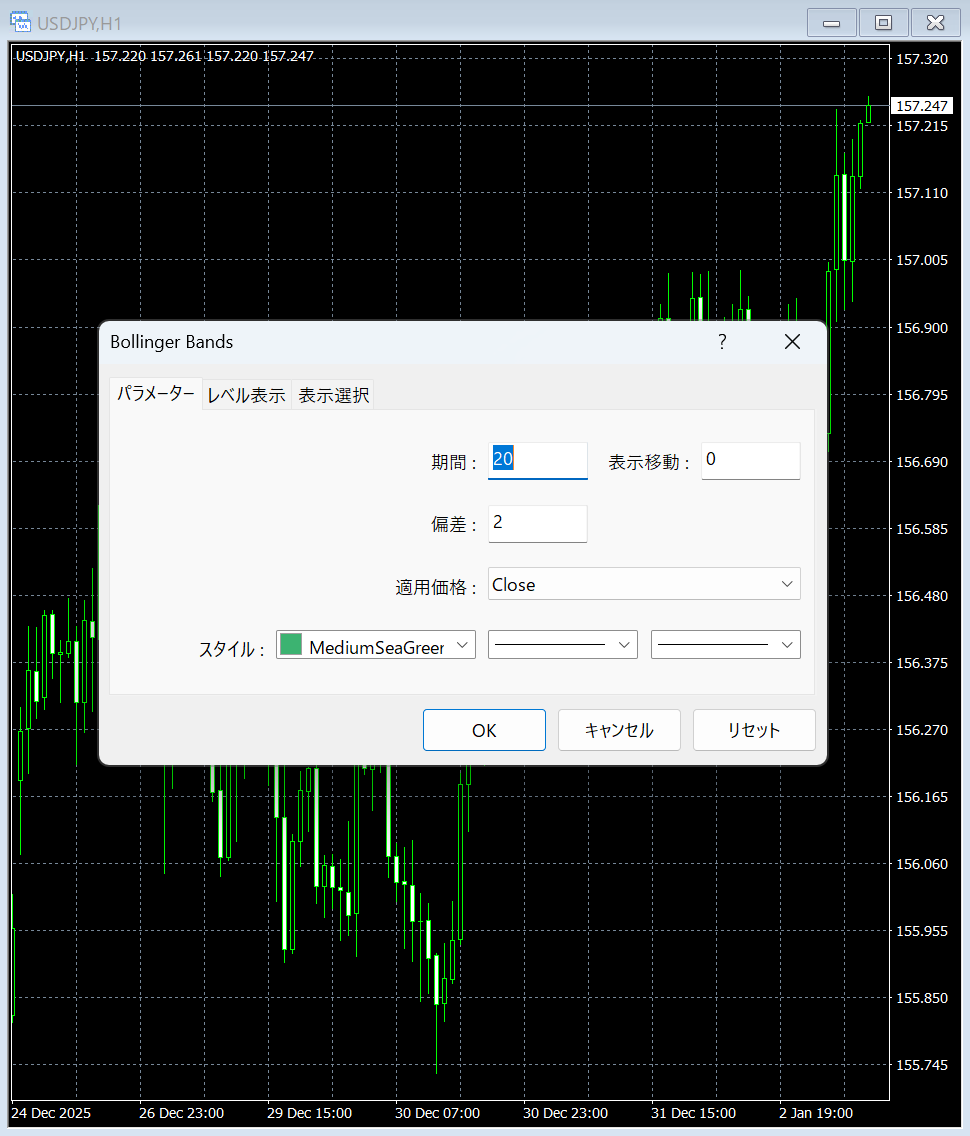 ここでは私が使用しているインディケータの1つであるボリンジャーバンドについて紹介します。