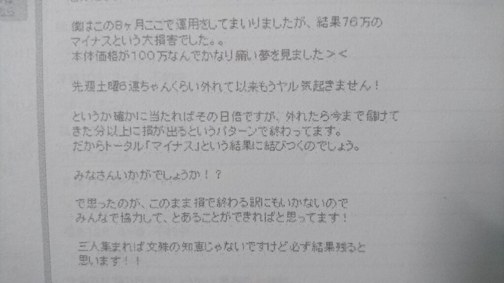 以下はその競馬ソフトのコミュニティに入っていた時のものですが、みんな酷い目に遭いました。