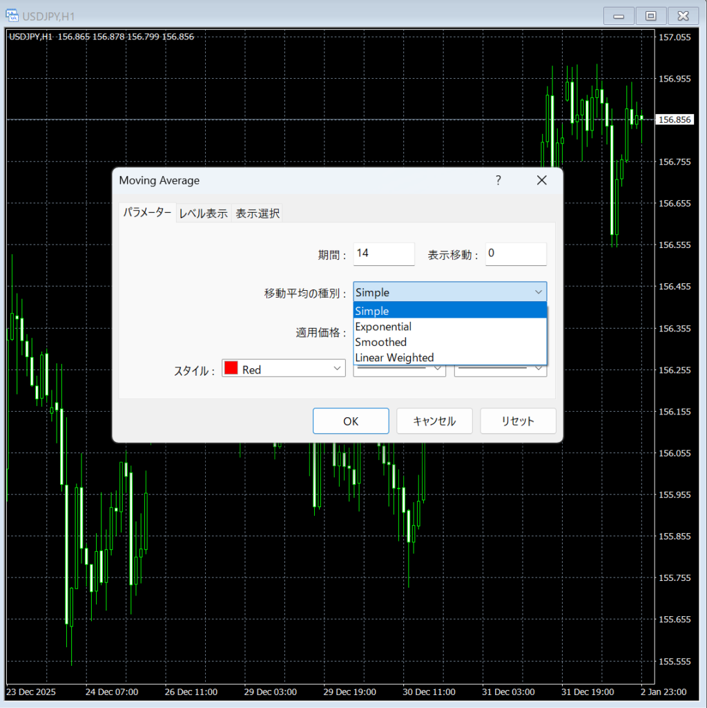 ここでは私が使用しているインディケータの1つである移動平均線について紹介します。